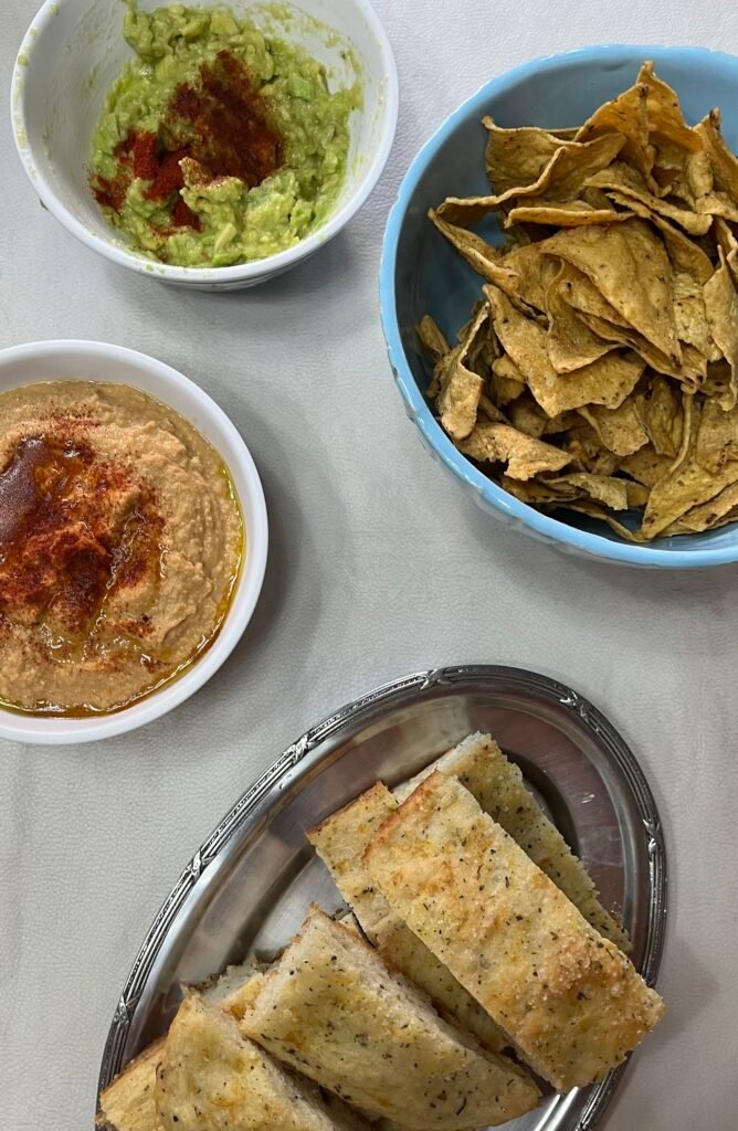 - Swoosh into a shallow bowl; top with EVOO, paprika, parsley; serve with warm pita and crisp veg.