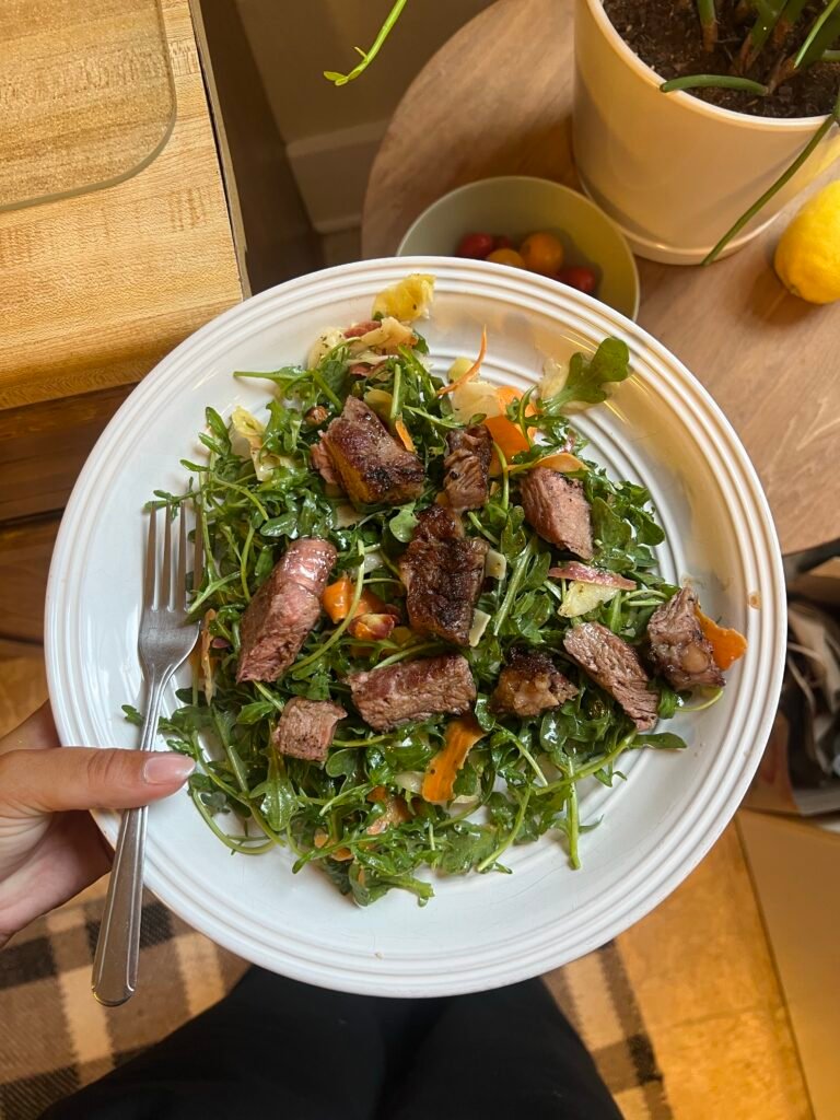 ๐Ÿฅฉ 2. Arugula Salad with Seared Beef Strips