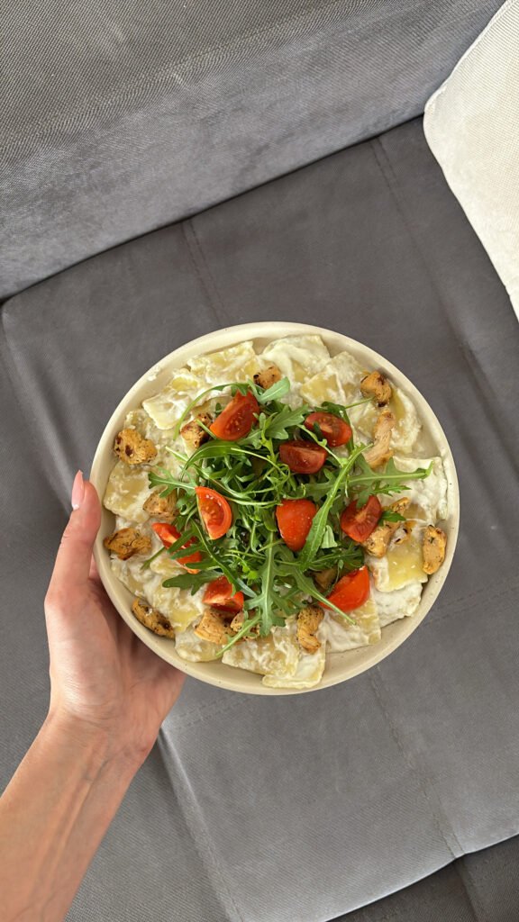 ๐Ÿง… 5. Ravioli with Chicken, Arugula & Tomato