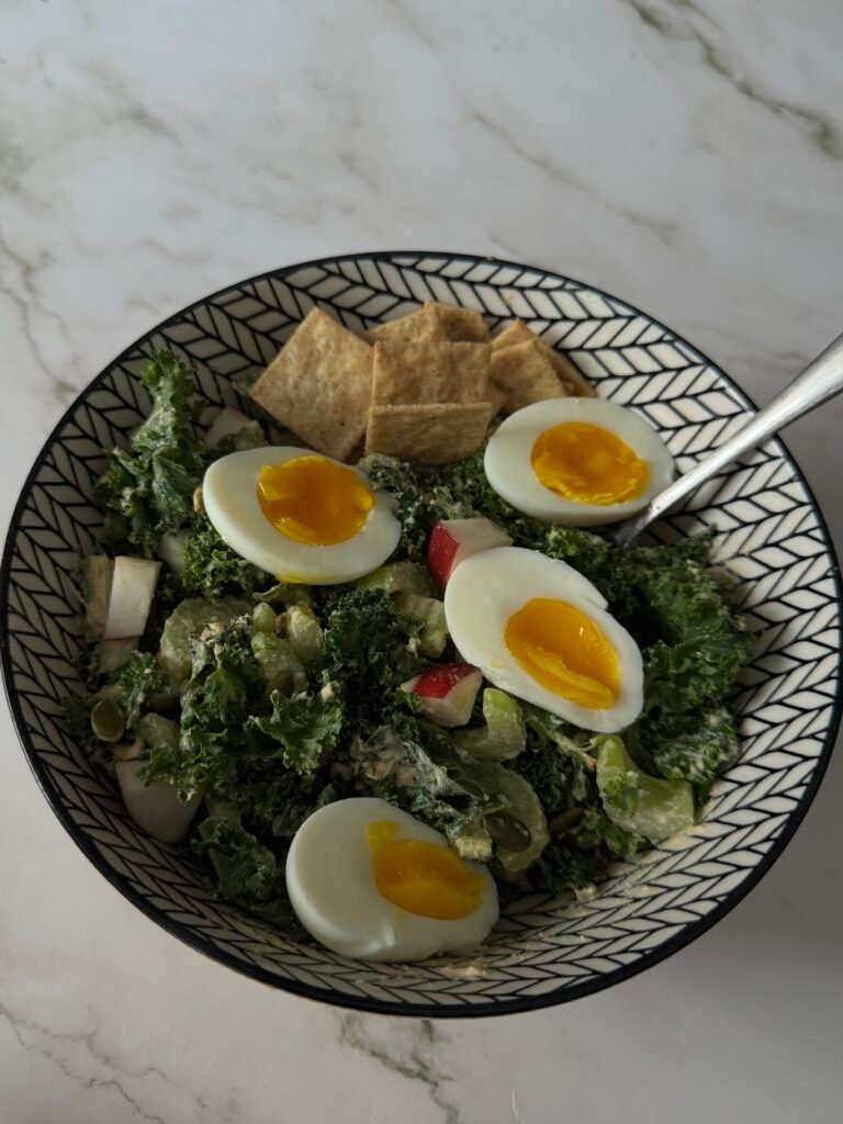 ๐Ÿณ 7. Warm Kale Bowl with Soft Eggs & Crackers
